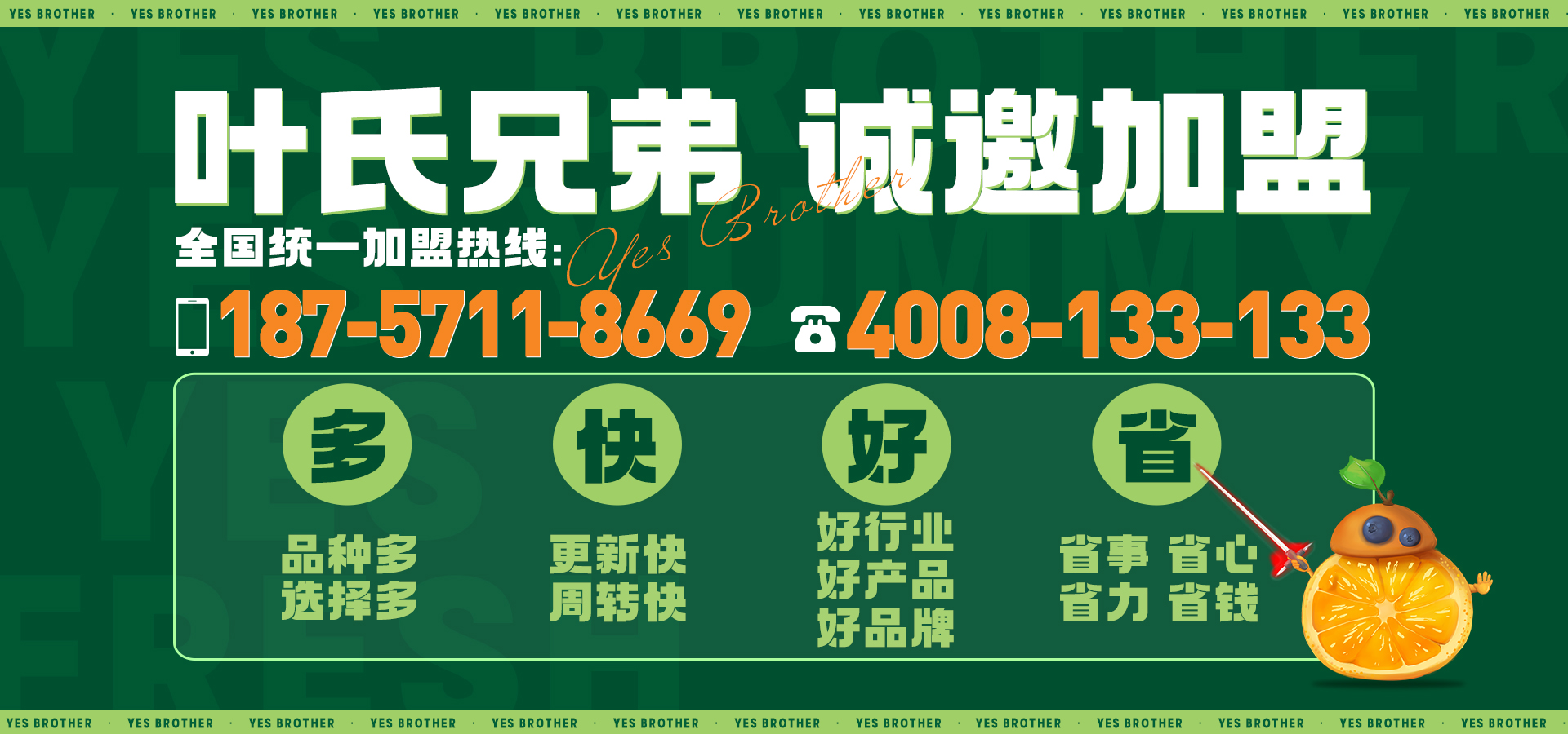 叶氏兄弟果业始创于1991年,专业从事水果、果品及其它果品的采购、加工、批发、配送与零售。经过近30年的稳健发展,叶氏兄弟已成为中国久富盛名的大型专业化时尚精品水果超市连锁品牌,集种植、采购、加工、批发、配送、零售及电子商务的平台化集团公司,形成了一个生态的“+互联网”全渠道、新零售商业平台。不同于一般的水果超市,叶氏兄弟果业一开始便走出了一条差异化满足与差异化竞争的品牌发展路线,定位于"绿色时尚精品果业"——追求绿色健康品质、成就时尚精品生活,一举打破了传统的水果零售模式,成为杭州大厦的特约独家果品零售商,被业界誉为"中国果品零售行业的标杆性企业"和"水果零售行业新时期的领路人"。叶氏兄弟始终以“提供优质果品,改善生活品质,提升服务效能,成就健康人生”为品牌使命。从产地种植、检测中心、鲜度管控、物流配送再到终端门店,叶氏兄弟不遗余力地淬炼细节,用优质的果品成就美好生活品质。叶氏兄弟,好吃领鲜一步!